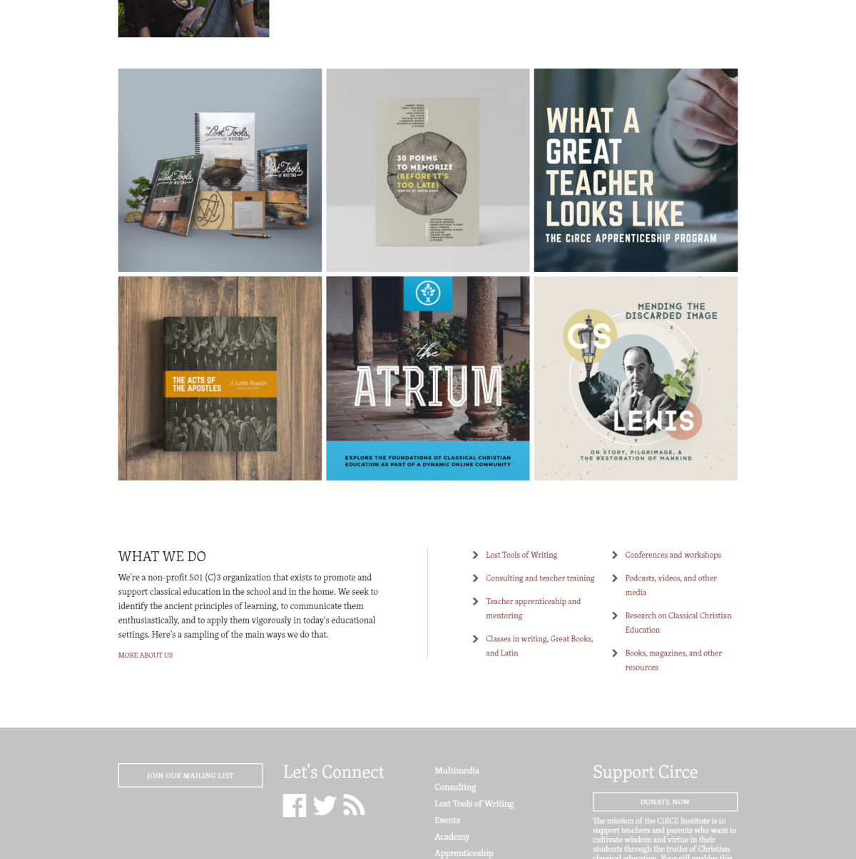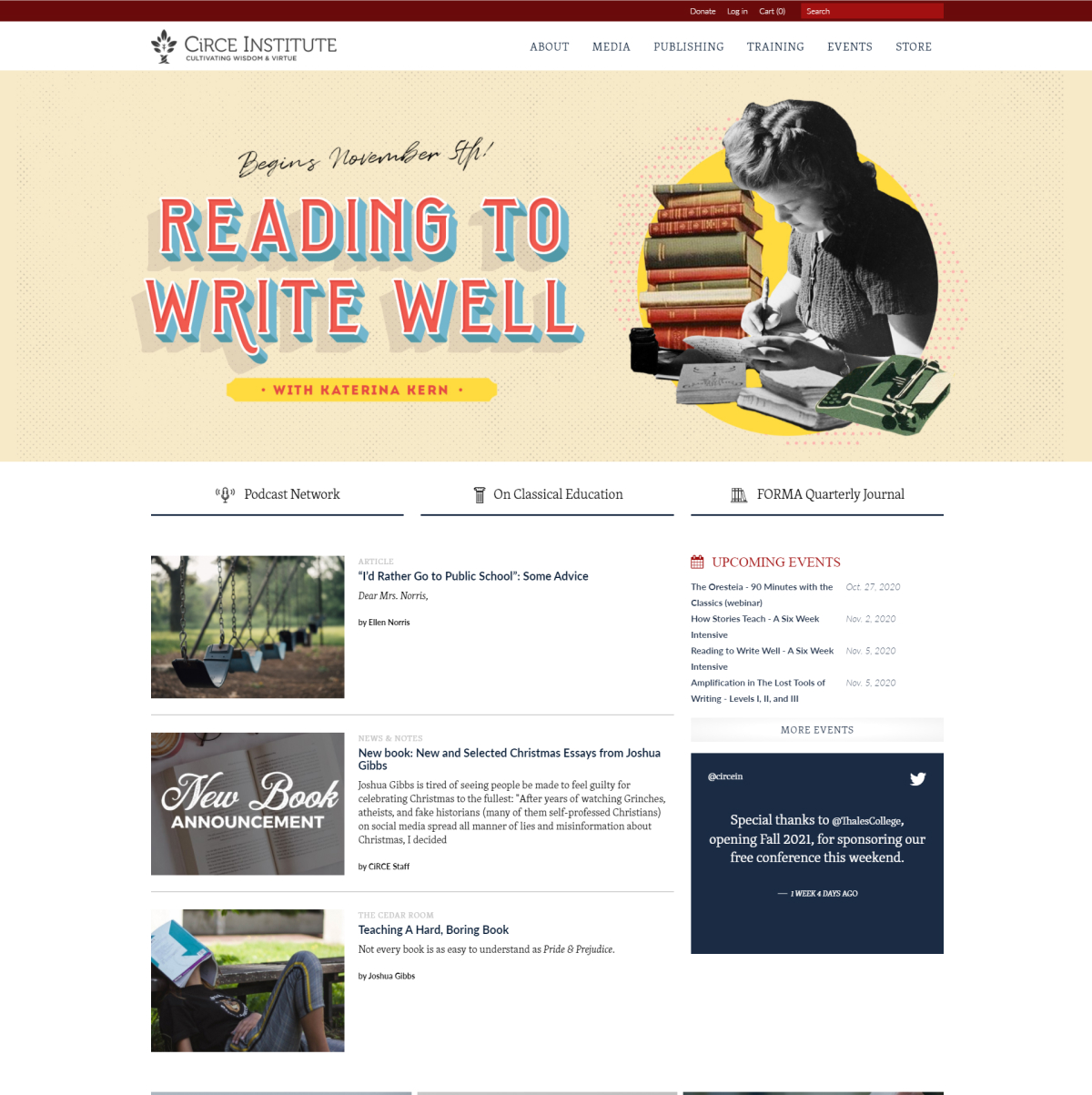 Circe Institute are an exciting client to design for as they are incredibly prolific in creating articles, curriculum, books, and events. It's always a pleasure to see a site alive with activity and from a client that puts so much into their artistry and presentation.
